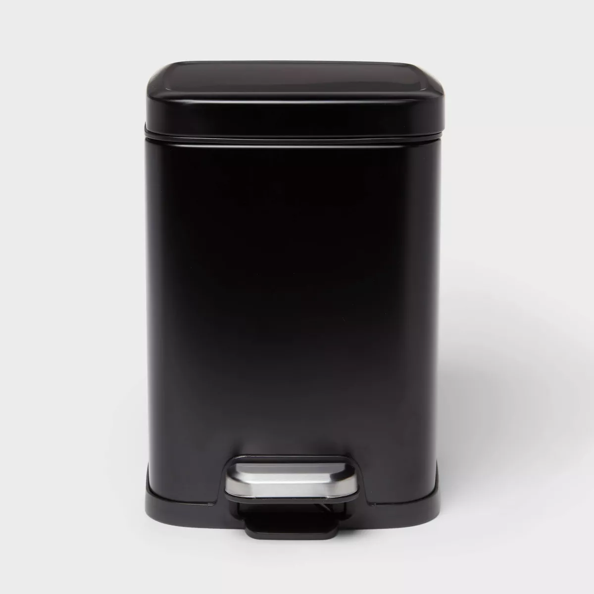 You’re sure to love the convenience and sleek style this 4-Liter Step Trash Can Stainless Steel from Brightroom™ brings to your kitchen, workstation or any other space. Made from stainless steel, this rectangular trash can features a quiet-closing, pedal-operated lid for easy, hands-free trash disposal, and it’s designed with a removable liner for easy cleaning. Showcasing a sleek, fingerprint-resistant design in a glossy, metallic black finish, it’s sure to be a visual update over your old trash can.